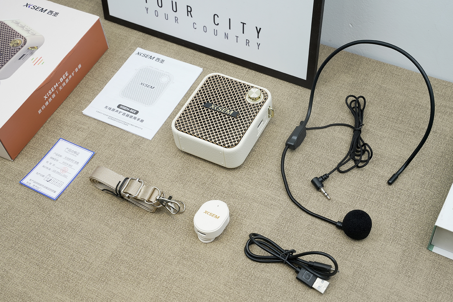 与以往笨重的腰挂式扩音器不同,西圣Bee小蜜蜂扩音器时尚精致的流线造型,打破了人们对扩音器的刻板印象。165g的轻盈重量搭配原色织物网罩,呈现出专业设备难得一见的亲和力。这个不足手掌大小的设备可以通过挂绳、背夹与使用者自然融合——教师可以直接将其悬挂在腰间,导游可扣在背包肩带,甚至作为小型户外音响时也能轻松悬挂在帐篷顶棚。