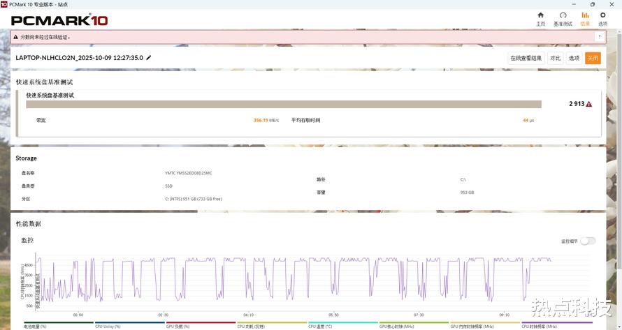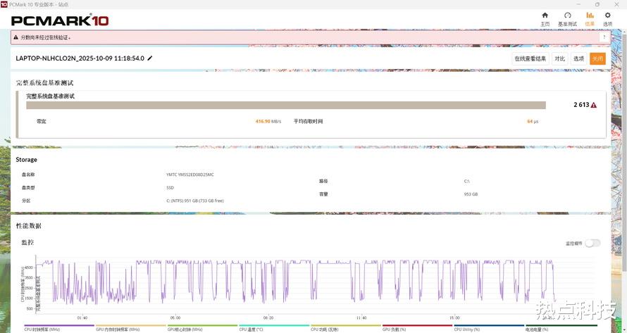 而在这次测试中,长江存储PC411固态硬盘表现也相当亮眼,即使是安装了Windows系统后,顺序读取、写入速度依然超过了标称值,在压力测试当中,SSD最高温度只有70摄氏度,在紧凑的笔记本空间内依旧保持低温、高性能运行。