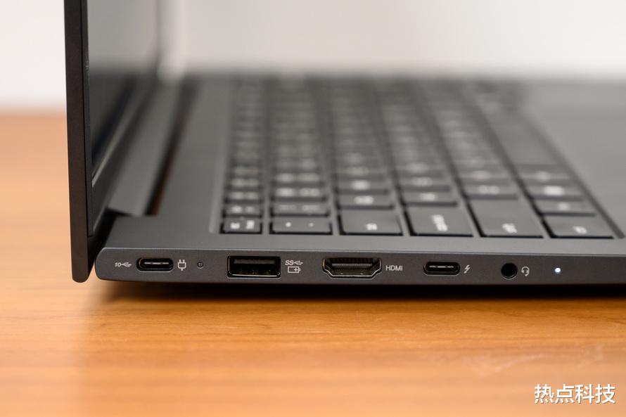 在接口方面,联想昭阳X5-14提供了多样化的选择,左侧是多合一读卡器,USB-A口,千兆自适应RJ-45网口,电脑锁孔;右侧是全功能USB-C,雷电4,HDMI,USB-A(支持关机充电),耳麦二合一接口,还内置了Wi-Fi6功能,足以满足日常办公、娱乐需求。