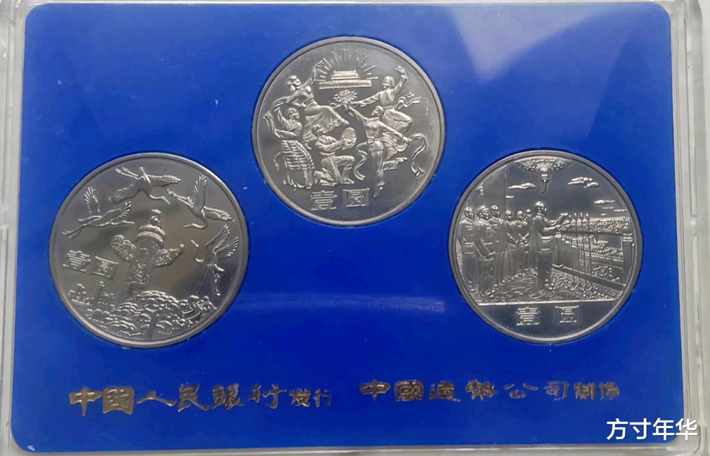 这3枚纪念币的内容分别是开国大典、民族大团结、祖国万岁。现在收购时都是一套收购,如果只有一枚或两枚,就很少有人收购,非常难出手。