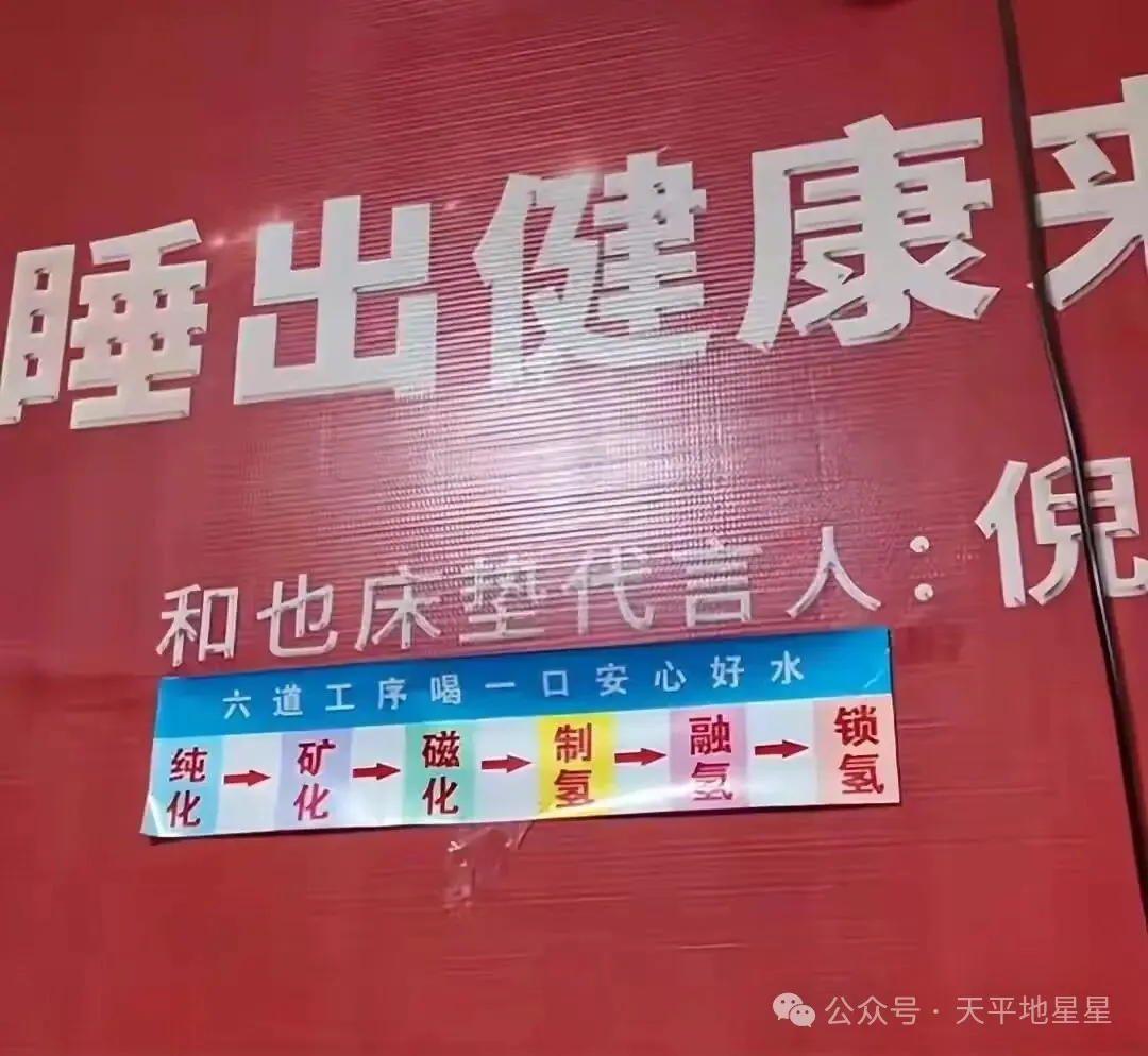 店里面的墙上张贴着大大的红布,写着大大的“和也床垫代言人--倪萍”。