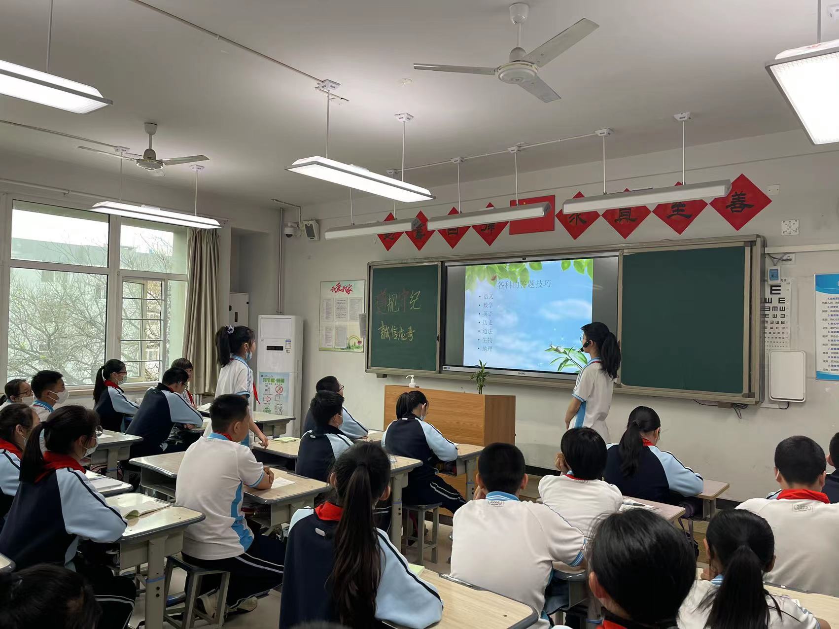 前天上午第一节课,老师们拿着分班的单子,依次告诉同学们,谁谁谁去哪个哪个班。然后,同学们就开始行动,收拾自己的书包,去新的班级报到。