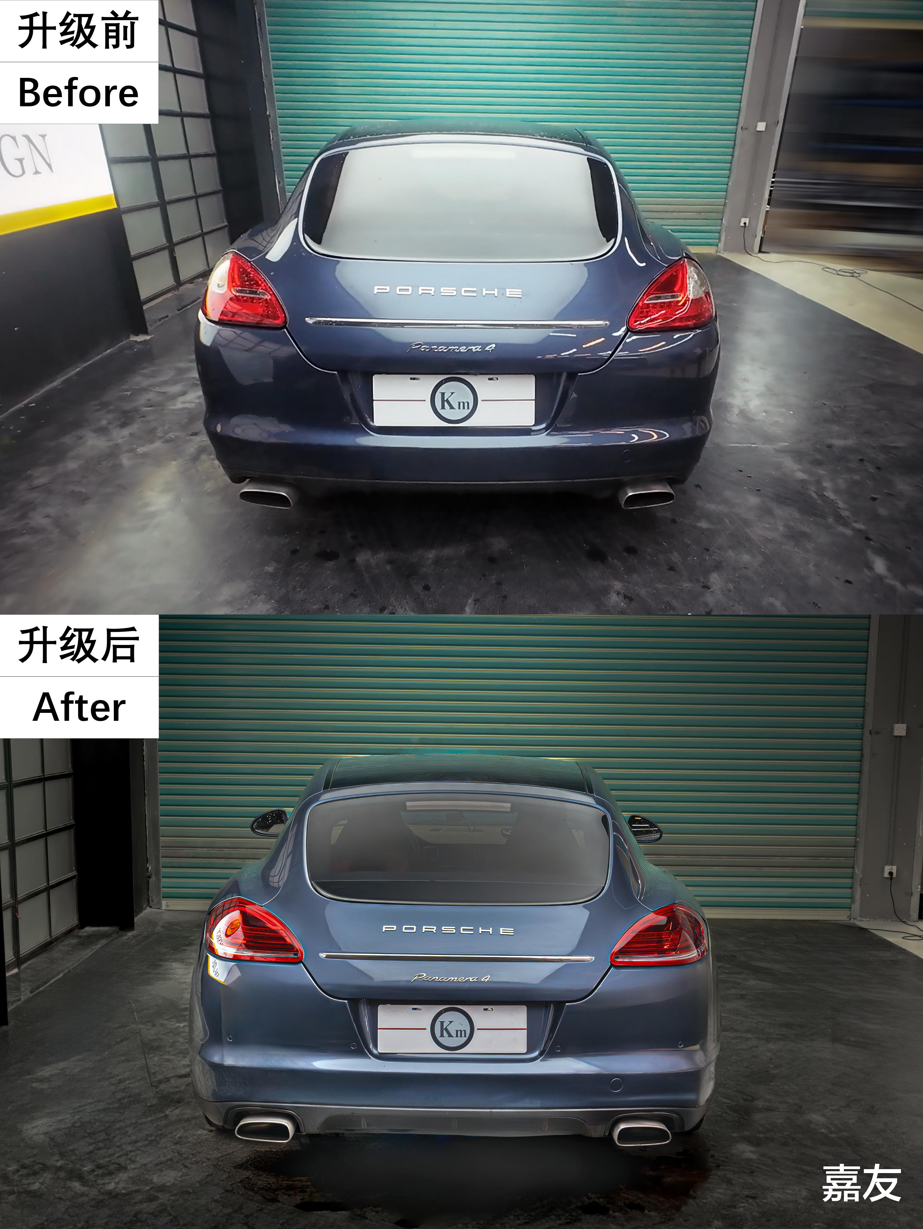老款保时捷帕拉梅拉尾灯经历岁月的洗礼,尾灯亮度低,暗淡,不够美观。改装升级后的尾灯优点颇多:首先,C字型示宽灯展现的效果营造动态领航之势,打造与众不同的尾灯风采。其次,LED高亮度刹车灯,减少追尾风险,提升车辆在路面的行车安全性。第三,动态LED流光转向设计舍去原本的呆板的面容,兼具安全与高辨识度。