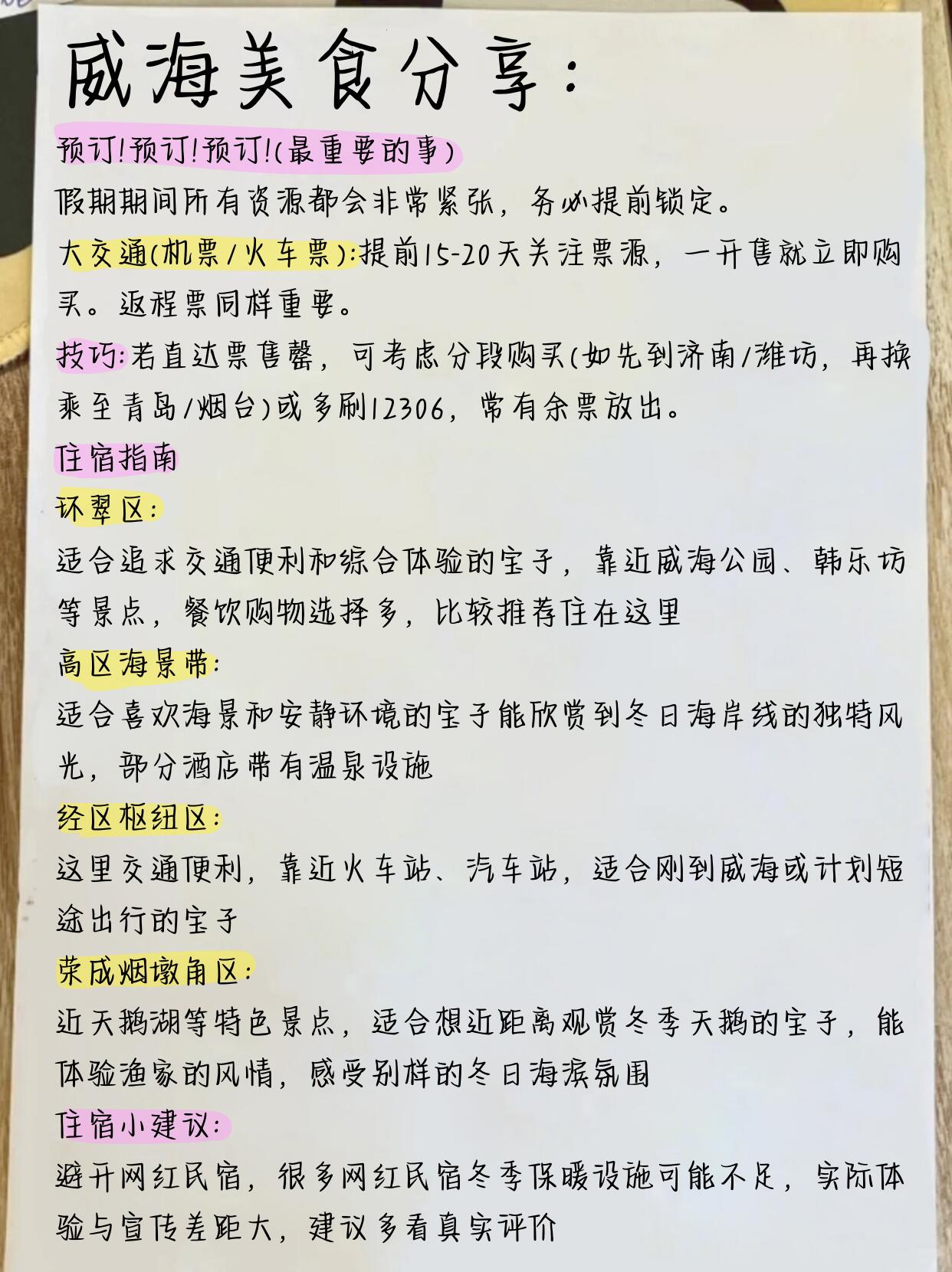 🧜5年的好闺蜜给我写的威海旅游攻略,特贴心啦~这趟去威海玩真的多亏了她给我写的攻略,不然过去还得走不少冤枉路