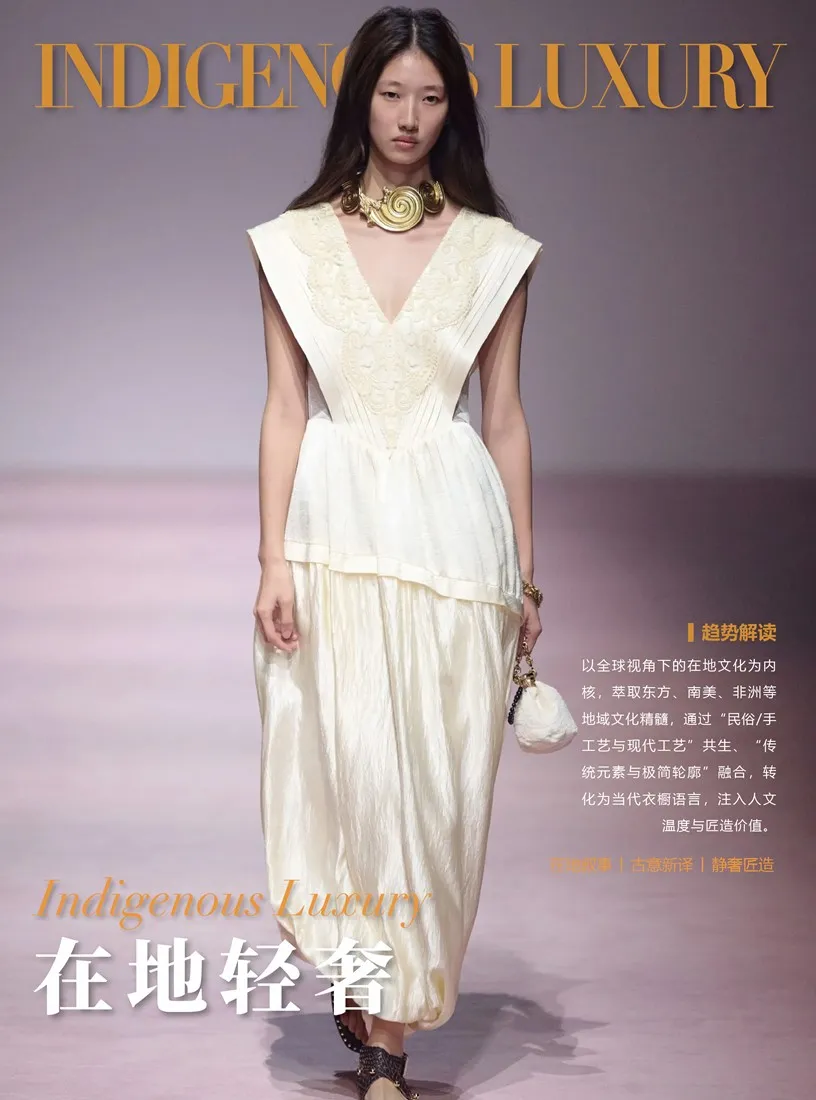 在地轻奢风格萃取全球地域文化精髓,通过植物染、手工编织等工艺,将亚麻褐、陶土棕等材质色融入解构西装、提花衬衫,彰显人文温度与匠造价值。