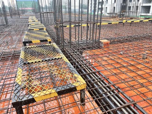 支座处负弯矩筋未采用有效的定位措施,混凝土浇筑过程中未设置通行马道,常常被施工人员踩踏下沉,导致楼板实际有效高度h0减小,使其不能有效发挥抵抗负弯矩的作用,结构板抵抗外部荷载的能力降低,易导致裂缝出现。