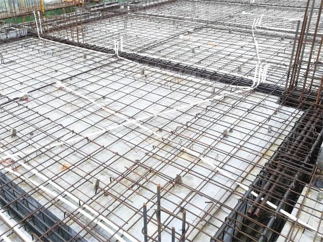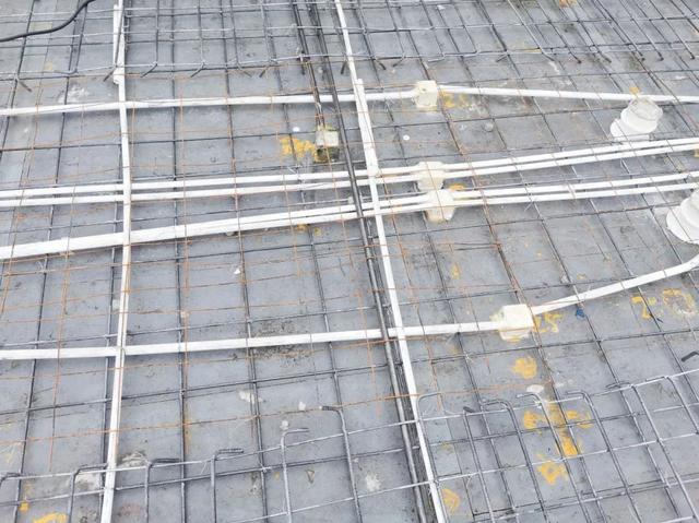 针对楼面板内预埋管线,应布置在上下层钢筋中和轴附近,并与钢筋交叉布置。严禁三层及以上管线交叉叠放,同时,宜在管线处增设抗裂网加强措施。