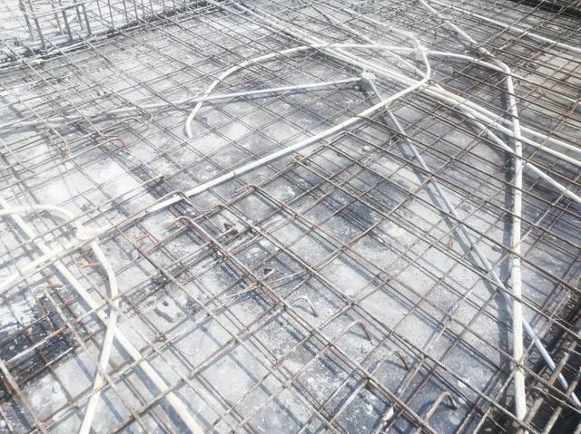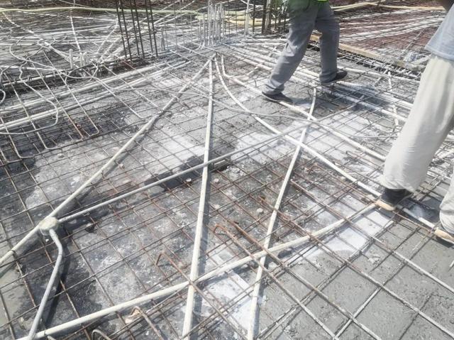 现浇板中线管出现十字交叉现象较多,又未采取抗裂措施,该部位对混凝土断面的削弱过多,造成楼板容易出现沿预埋线管方向的楼面裂缝。