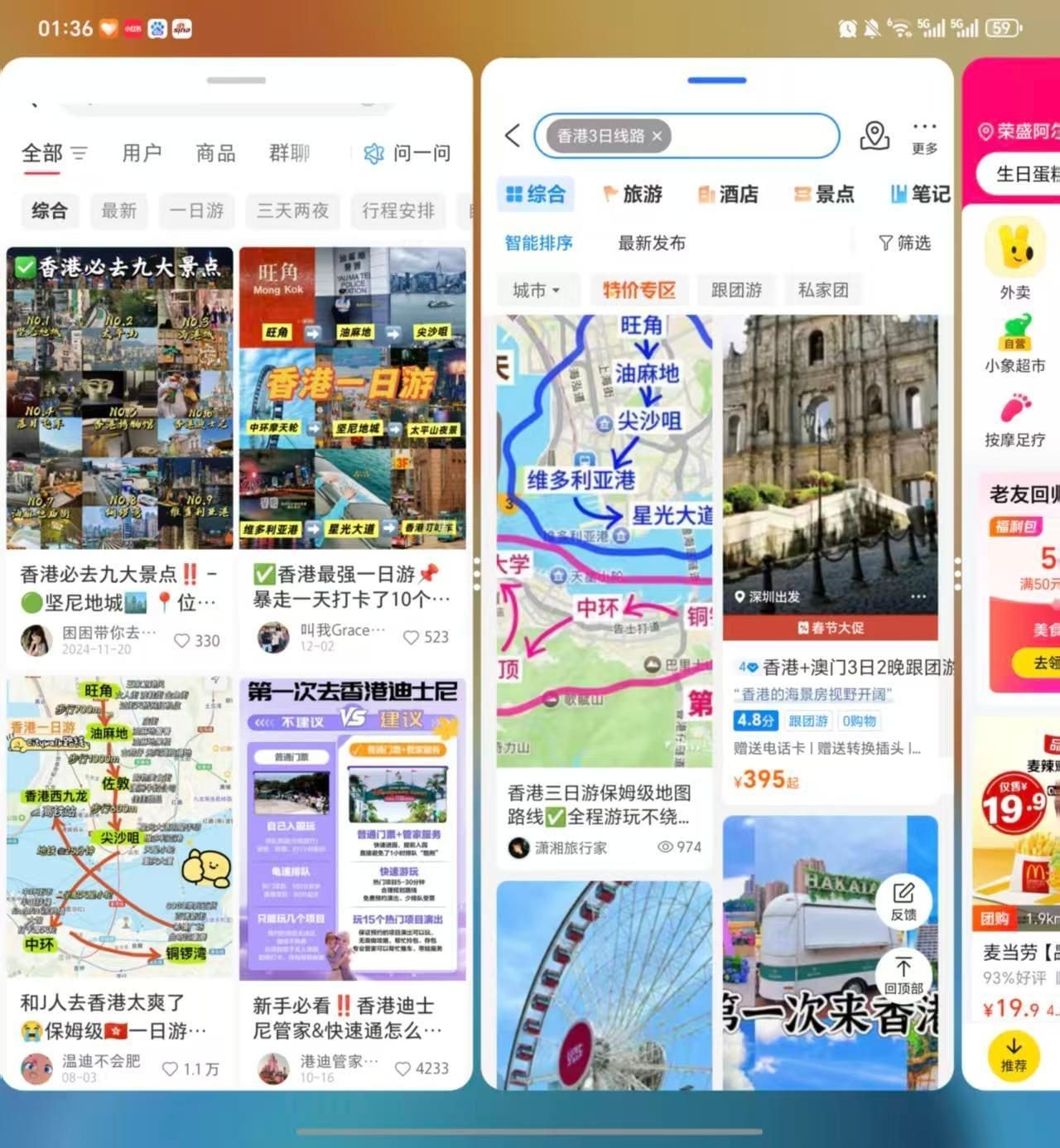 分屏功能,则是它隐藏的“分身魔法”。以往使用其他折叠屏手机进行分屏操作时,总觉得繁琐复杂,但Magic V5的YOYO智能体却仿佛拥有读心术一般。只需轻声说出“YOYO,三分屏显示小红书、携程、美团”,它便能瞬间将屏幕巧妙地分成三块,让三个应用各自独立运行,互不干扰;