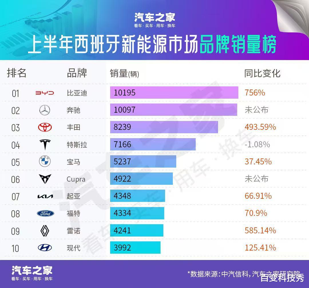 从汽车之家发布的上半年销量榜来看,比亚迪在欧洲市场上的销量都不能用亮眼来说,而是强的有点可怕了,直接以71345辆的销量成绩拿下新能源市场中国品牌销量榜第一,同比增长达到了322.99%。