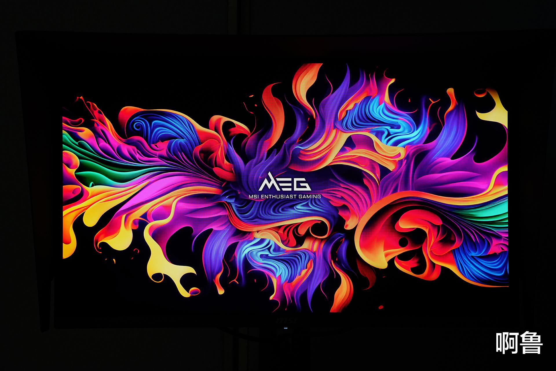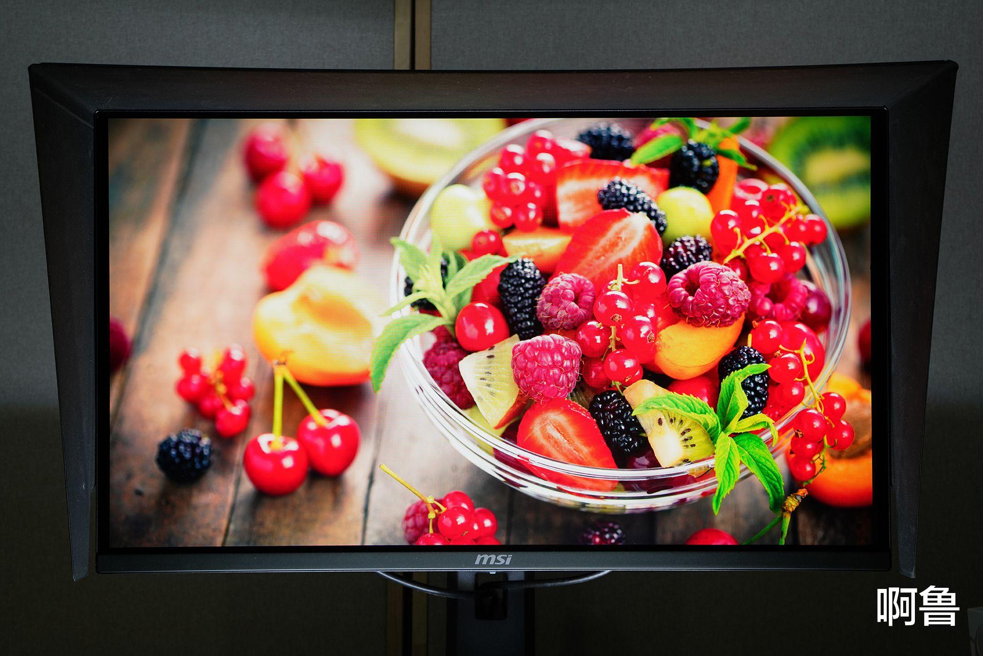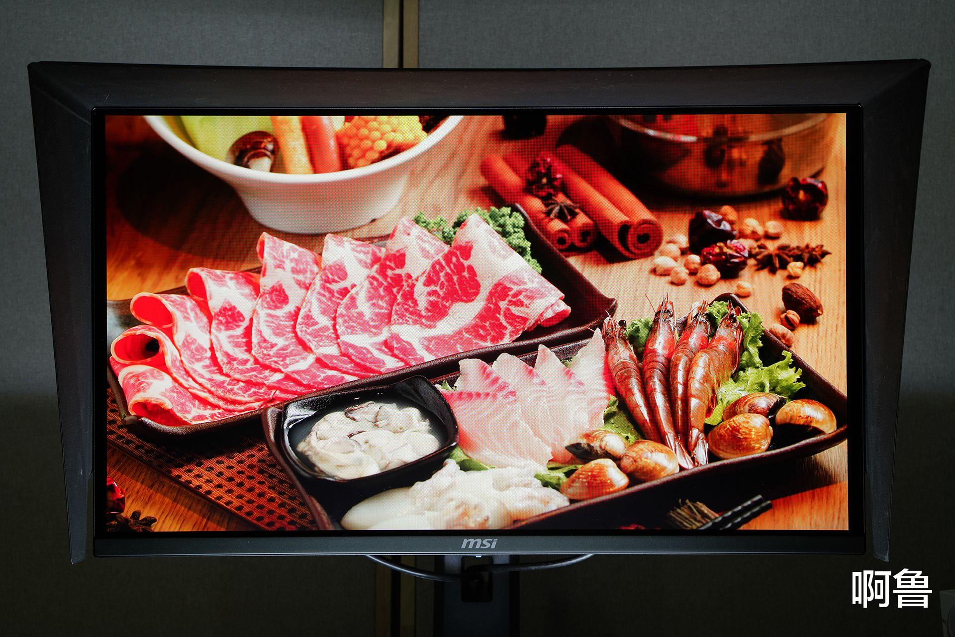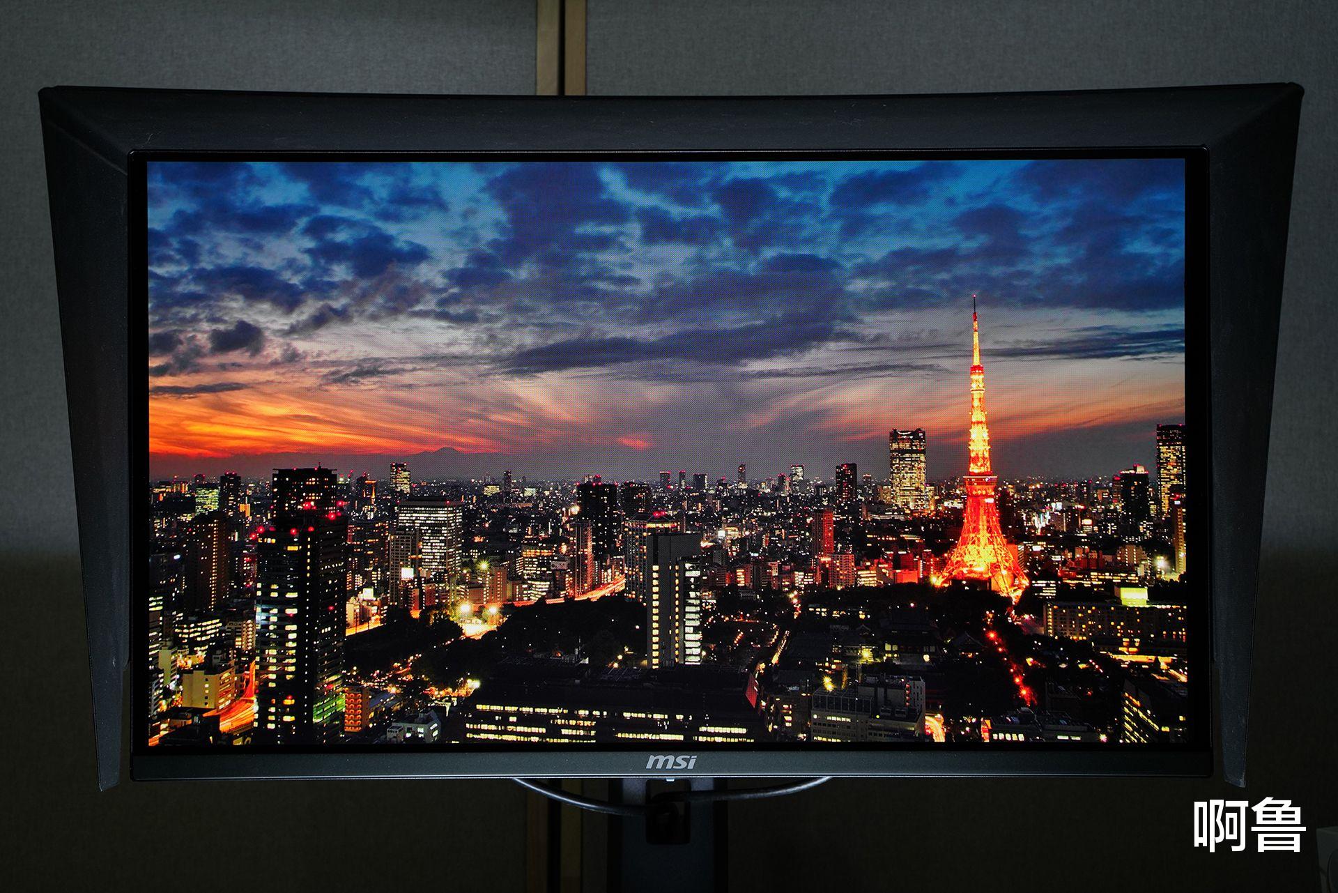 从前面五张实拍图可以看出,微星MAG 272QP QD-OLED X50搭载三星第四代QD‑OLED面板,量子点阵让显示器在色彩表现和色准方面非常出色。无论是火锅食材的红白纹理、猫咪毛发的细腻层次、果盘中各种水果的鲜艳色彩,还是草地夕阳的暖色过渡、夜景城市的冷暖对比,都呈现出非常真实且浓郁的色彩,还原度高,没有偏色或灰蒙感。这种表现正是得益于面板拥有高达99% DCI‑P3、98% AdobeRGB 的广色域以及 ΔE<2 的专业级色彩精度。与此同时,OLED像素自发光的特性带来了极纯净的黑色,夜景和暗部区域几乎没有灰雾,黑得干净深邃,对比度极高,让亮部的灯光、物体细节在黑暗背景中格外突出,整体画面层次感和立体感非常强。