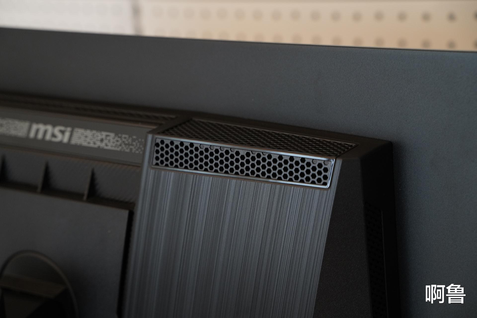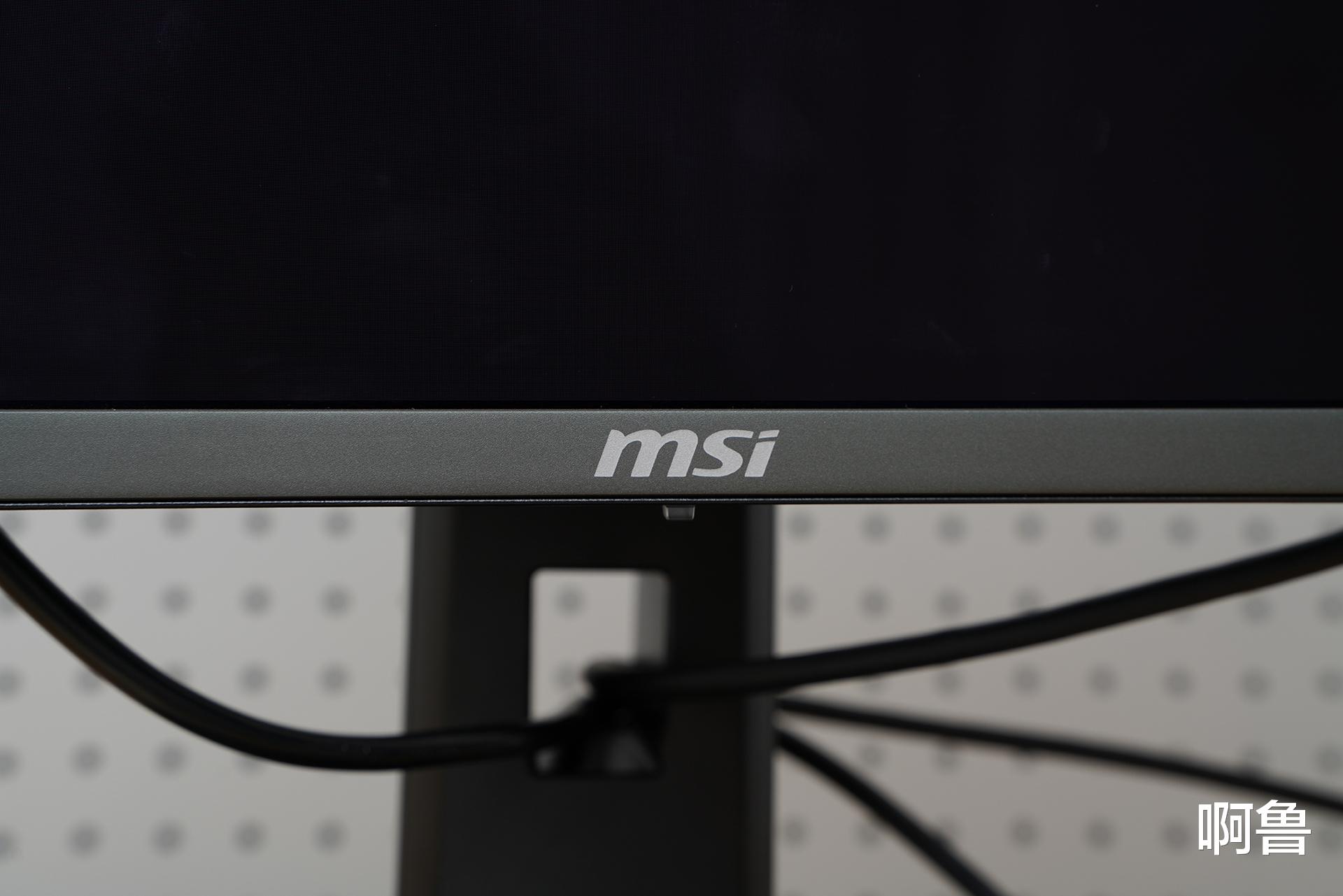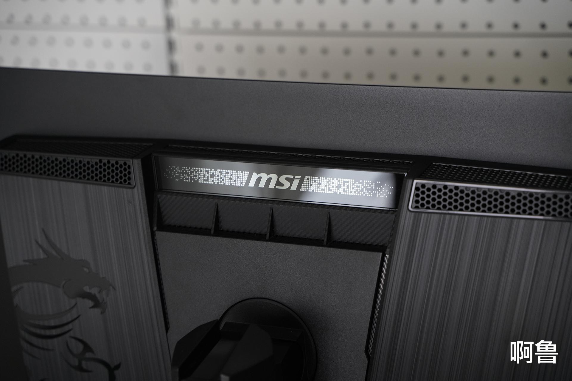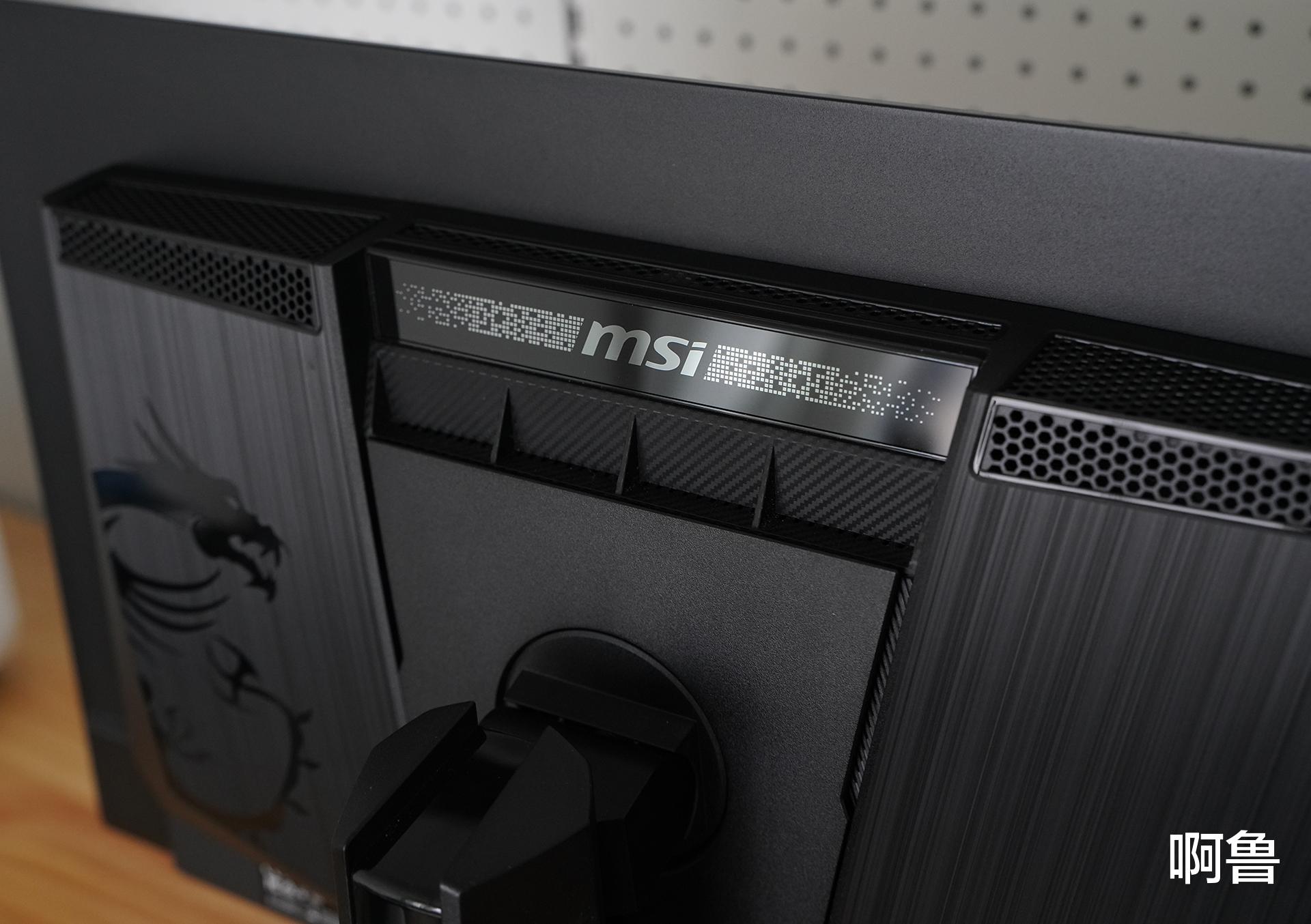 显示器支架带有理线孔,MSI LOGO下隐藏了屏幕状态灯,低调简洁有范 !