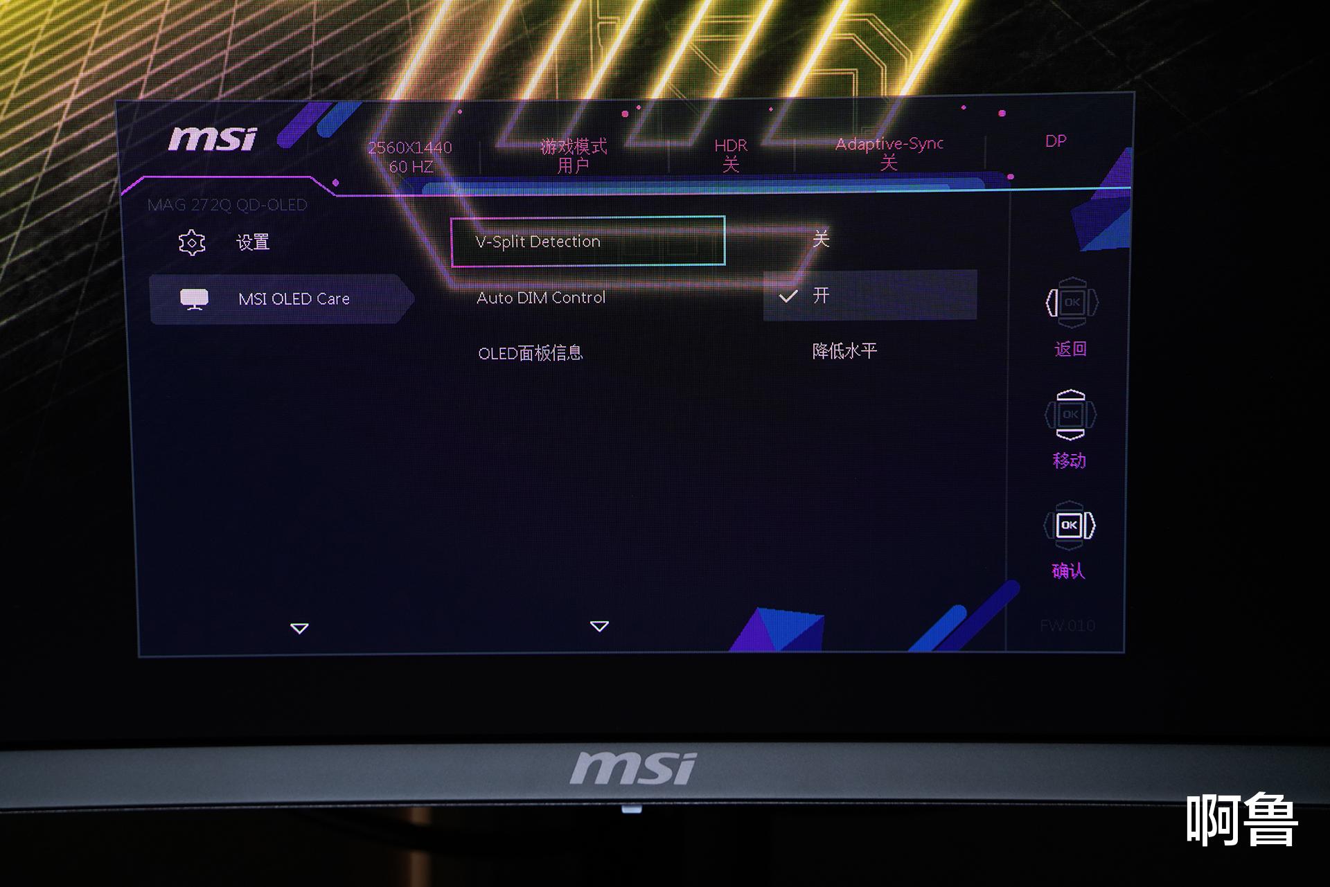 屏幕OSD位于指示灯后方,方便用户定位同时还配有摇杆,盲操那个丝滑不输飘柔!
