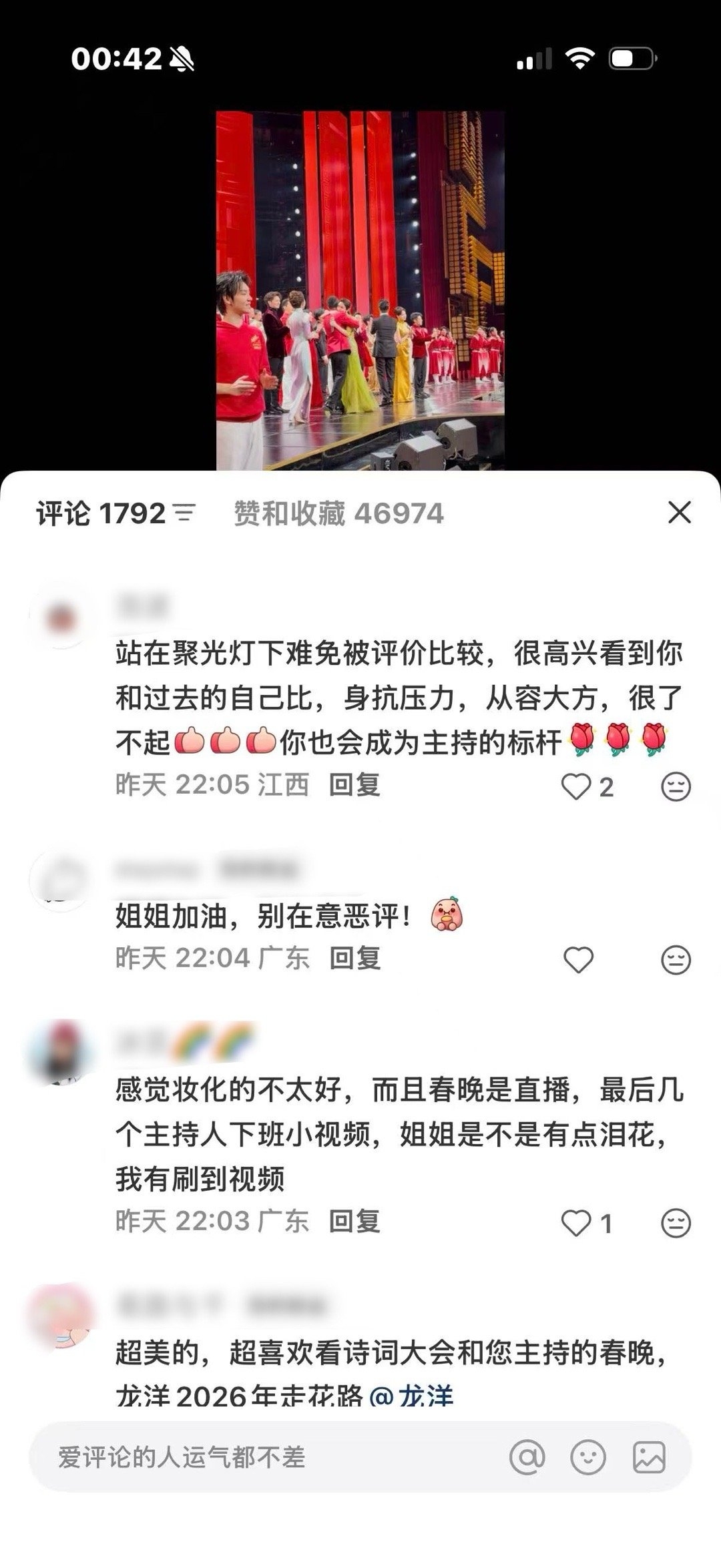 当龙洋说出“再见”时,泪水夺眶而出。她在社交平台发文坦言:“这不是遗憾的泪水,而是超越了从前的自己的释然。”搭档尼格买提晒出的后台照片中,她下台后仍在颤抖的双手,与镜头前从容微笑的形象形成鲜明对比。这场泪洒现场的背后,是她五年间从“被质疑”到“零失误”的蜕变——从2021年的口误到2026年的全程零差错,从依赖提词器到独立完成上千次串词衔接,她用实际行动诠释了“成长不是聚光灯下的结果,而是无人看见时一步一步完成的跋涉”。