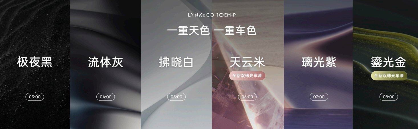 除了最帅的造型,领克10 EM-P还以“晨光律动”为设计灵感,带来极夜黑、流体灰、拂晓白、鎏光金、天云米、璃光紫6款车色。其中,鎏光金和天云米采用了默克专利Xirallic®双珠光晶彩光学车漆,综合成本增加了2倍,色彩饱和度提升了30%以上,采用豪车专属喷涂工艺,30台机器人接力喷涂10小时,形成8层防刮耐磨耐腐蚀车漆,让好看更耐看。
