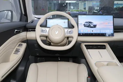 坐进车内,来看看内饰。26款宝骏云海500km纯电标准版采用环抱式设计布局,给人一种温馨舒适的感觉。新增的云暮黑和云霞米两款配色,让车内氛围更加时尚大气。大面积的皮质包覆,手能触摸到的地方都很细腻,质感非常好。两幅式多功能方向盘采用皮质材质,大小适中,握感舒适,还支持上下前后四向调节功能 ,不管是身材高大还是娇小的驾驶者,都能找到合适的位置。8.8英寸的全液晶仪表盘分辨率不错,可查看的行车信息非常丰富,让驾驶者对车辆状态一目了然。中控台配备的15.6英寸液晶大屏,显示清晰,操作流畅 。虽然不支持手机互联映射功能,但它的语音识别控制系统很好用,在多指令条件下的响应速度也比较快,基本上在驾驶过程中,大部分的功能都可以通过语音识别进行操作和完成,比如打开导航、播放音乐、调节空调温度等,解放了双手,提高了驾驶安全性。另外,它还带有应用商店拓展功能,可以将常用的APP下载至车机屏幕上,方便日常使用。