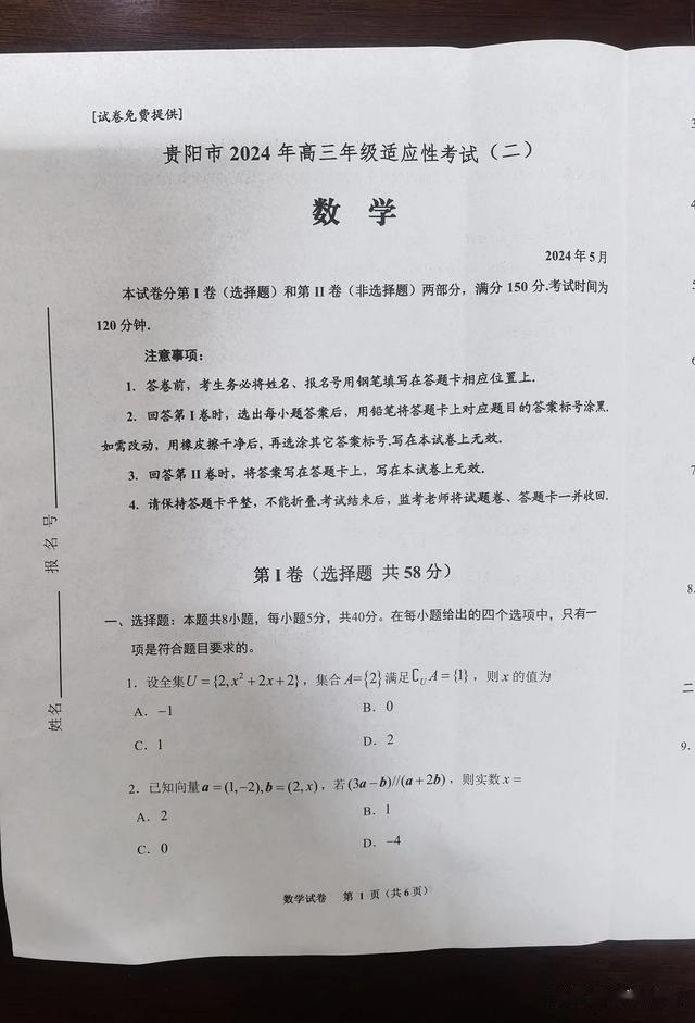 贵阳市2024年高三年级适应性考试二数学试卷第19题是有关复数的题,别出心裁呀!