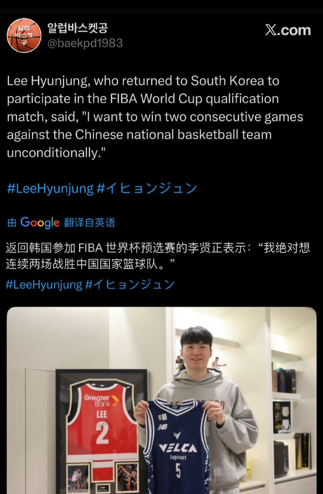 李贤重被中国男篮打哭两次