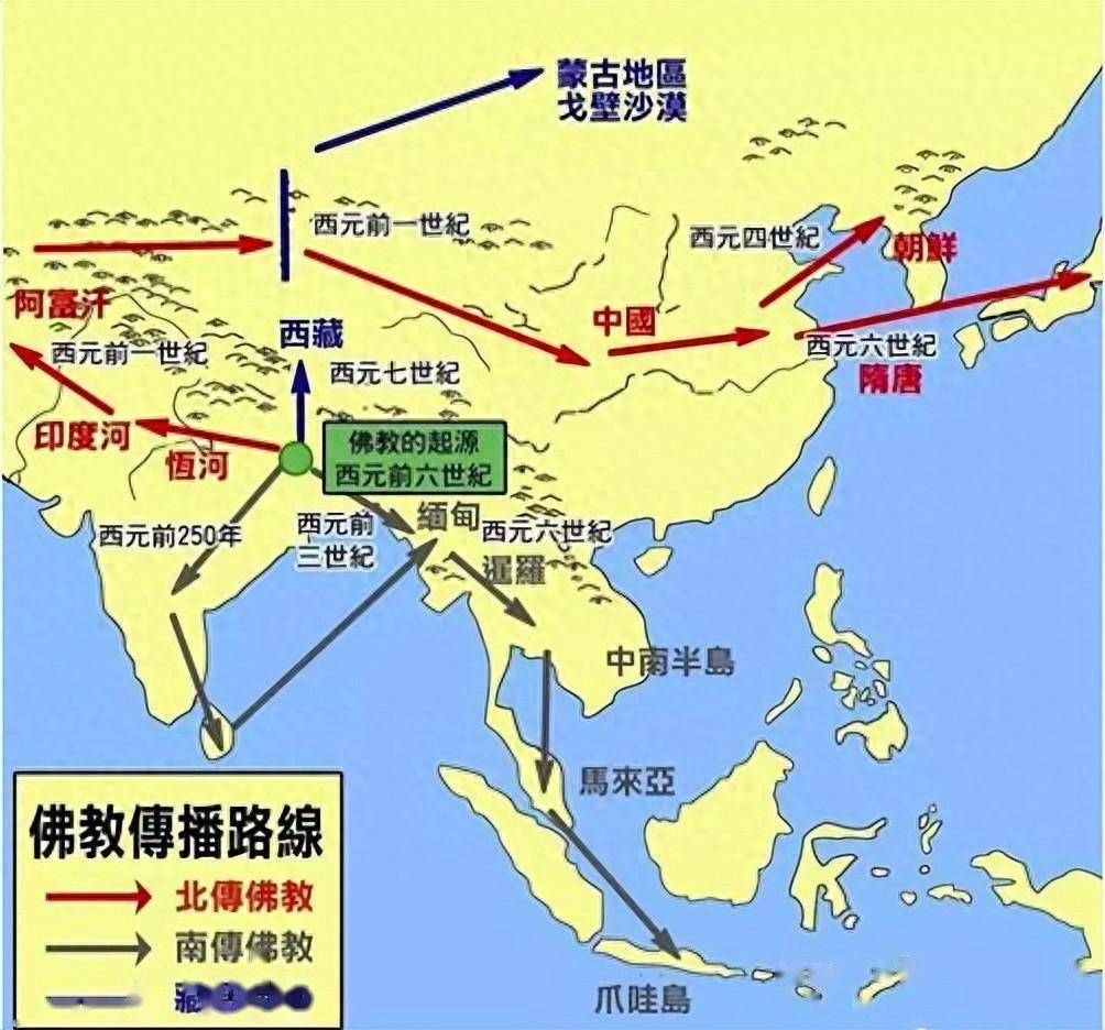 这一时期佛教由古印度传入周边地区:阿育王派出的传教僧侣足迹遍及如今的斯里兰卡、缅甸、中亚乃至叙利亚、埃及等地。西汉初年佛教已传入西域一些小国。丝绸之路打通佛教开始由西域逐渐向中原传播。相传西汉元寿元年(公元前2年)西域大月氏使者伊存来到长安受到了汉哀帝的接见。在双方交谈过程中伊存向汉哀帝的儿子刘衎诵读了一部佛教经典《浮屠经》。据记载当时刘衎听了伊存的诵读后非常感兴趣,于是就把伊存留下来进一步请教佛教的相关知识。伊存授经这件事在当时并没引起太大的轰动,但却是佛教传入中国的一个重要标志性事件。