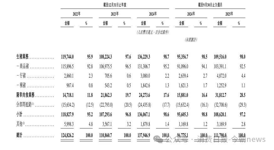 业绩方面,2022年、2023年、2024年及2025年前9个月,牧原股份营收分别为1248.26亿元、1108.61亿元、1379.47亿元及1117.9亿元;净利润分别为149.33亿元、-41.68亿元、189.25亿元及151.12亿元。