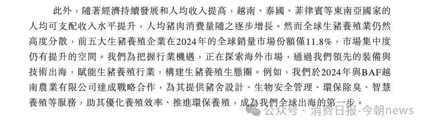 牧原业务发展的核心转向已明确指向海外。公司已将东南亚作为国际化的突破口,先后在越南、菲律宾、泰国推进布局。