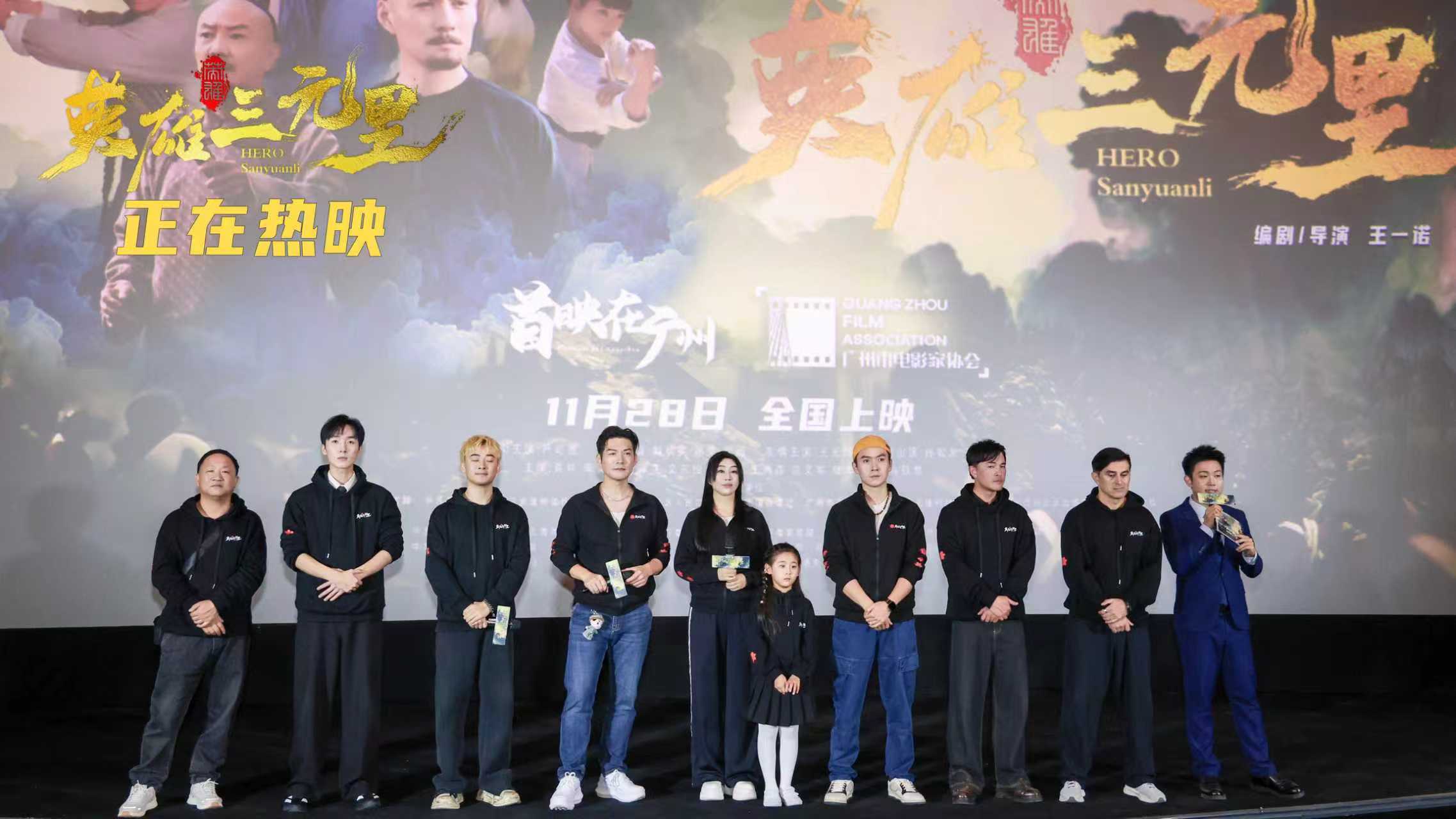 11月28日,电影《英雄三元里》正式登陆全国院线,影片由实力演员严屹宽领衔主演,用光影传承不屈民族精神,以银幕之力唤醒百年民族记忆。此前,影片在故事发源地广州举办“铭记英魂,守护家国”主题首映礼,青年导演王一诺携领衔主演严屹宽,主演刘秋实、方洋飞、王禹森、李圣雄、马铁摩、龚秩、杨环宇等主创集体亮相,与现场观众深度回溯1841 年103乡百姓自发抗英的壮阔历程,现场座无虚席、反响热烈,观众纷纷力赞影片中三元里百姓挺身而出、英勇无畏的抗争身影与滚烫血性,尽显影片直抵人心的情感穿透力与超强感染力。