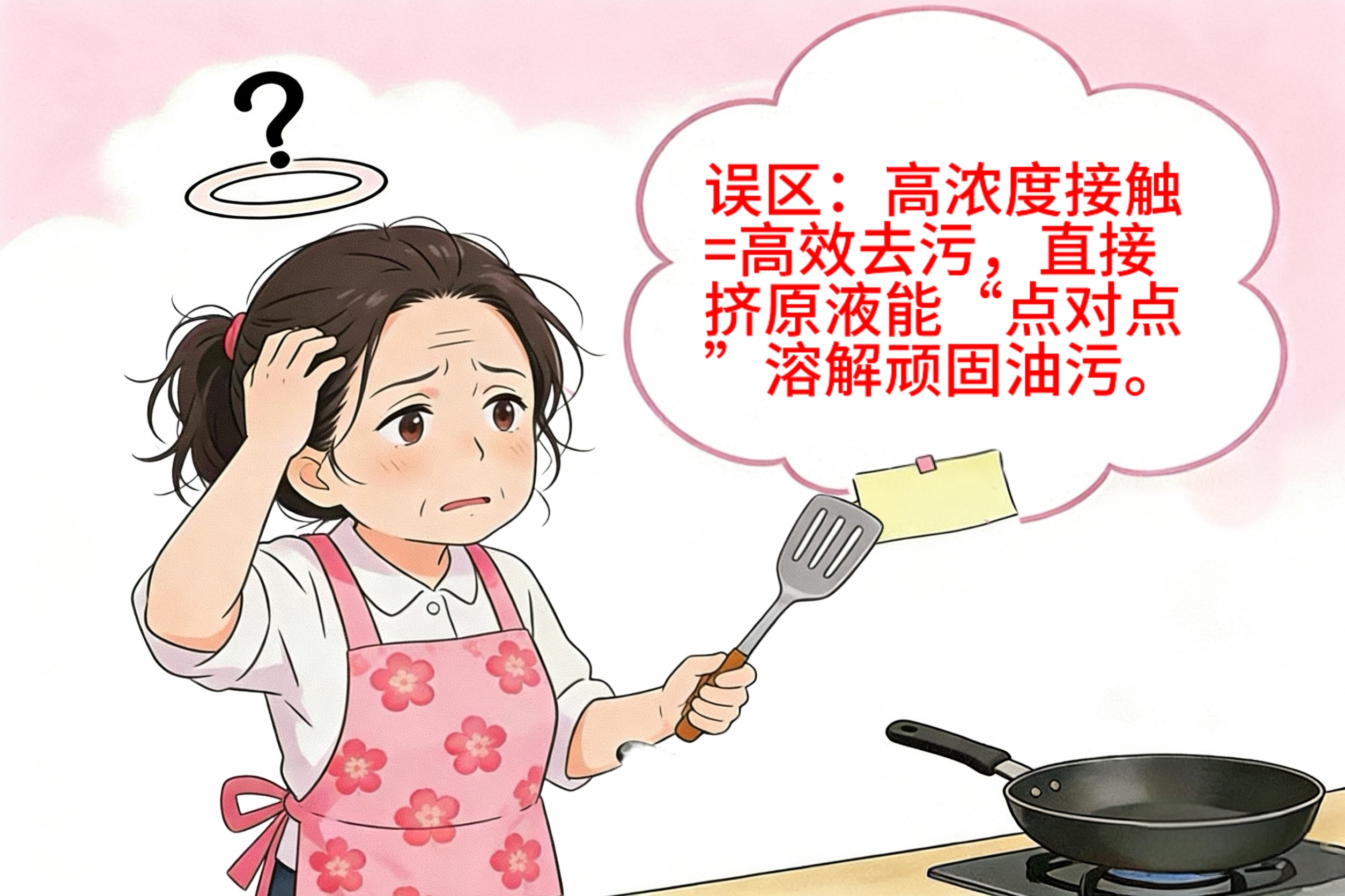 高浓度接触=高效去污,直接挤原液能“点对点”溶解顽固油污。