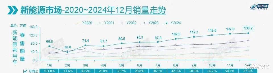 新能源乘用车国内市场渗透率自2024年9月至12月连续四月下滑,8月达53.7%高点后,逐月降至12月的49.4%,再次跌破50%大关,令人惊讶。