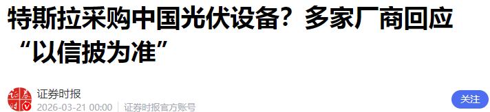特斯拉采购中国光伏设备?多家厂商回应“以信披为准”