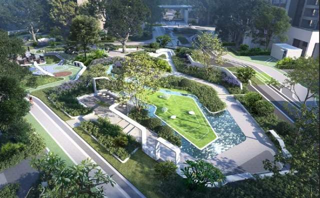 凯德丰在拾悦城楠园的开发中,着重强调“全维共享”理念。社区内规划超万平方米的中央园林,通过高低错落的植被与水景结合,形成动静分区的活动空间。儿童游乐区采用软质地面与无动力设施,兼顾安全性;环形慢跑道贯穿园林,串联起健身器材区与休憩凉亭,满足不同年龄段的户外需求。