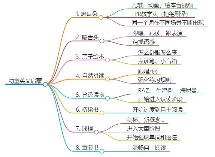 从小能磨多少磨多少,能泡多少泡多少;随着娃听力词汇量的积累和年龄的成长,逐渐对接分级读物、教材,老老实实按照学科路线继续走,才能走得更远。