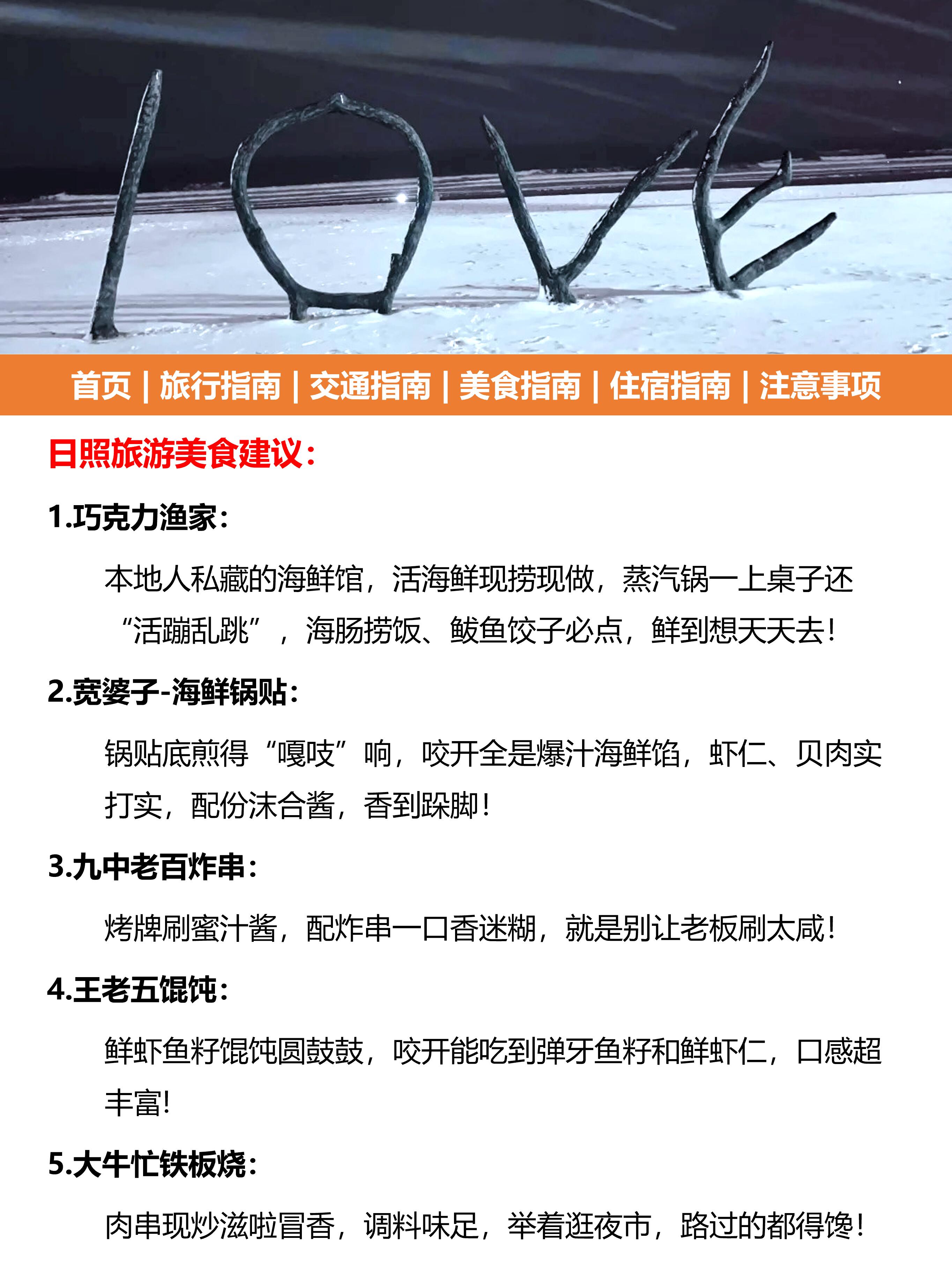 7.冬天季节部分景点开放时间可能调整,建议出行前查询最新信息日照地区公交末班车时间较早,请合理安排返程