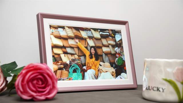 相框正面是一个10.1英寸的屏幕,边框不算夸张,和我们传统的相框摆在一起,甚至没有特别大的违和感,体积大小都非常相称,最关键的是这么一款数码相框支持重力感应,无论是横屏照片还是竖屏照片,都能巧妙得当的显示出来,更像一件低奢风格的小摆件,日常摆放起来,偶尔一撇,还挺有生活的感觉。