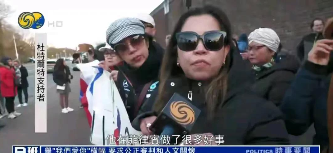 从现场视频画面可以看到,海牙拘留中心外已经聚集了大批杜特尔特支持者。他们手举菲律宾国旗和“我们支持杜特尔特”的标语,并高喊“释放杜特尔特”。有支持者认为,杜特尔特曾为维护社会治安、打击犯罪付出了巨大努力,应受到公正对待。他们呼吁要给予前总统必要的医疗和生活保障。