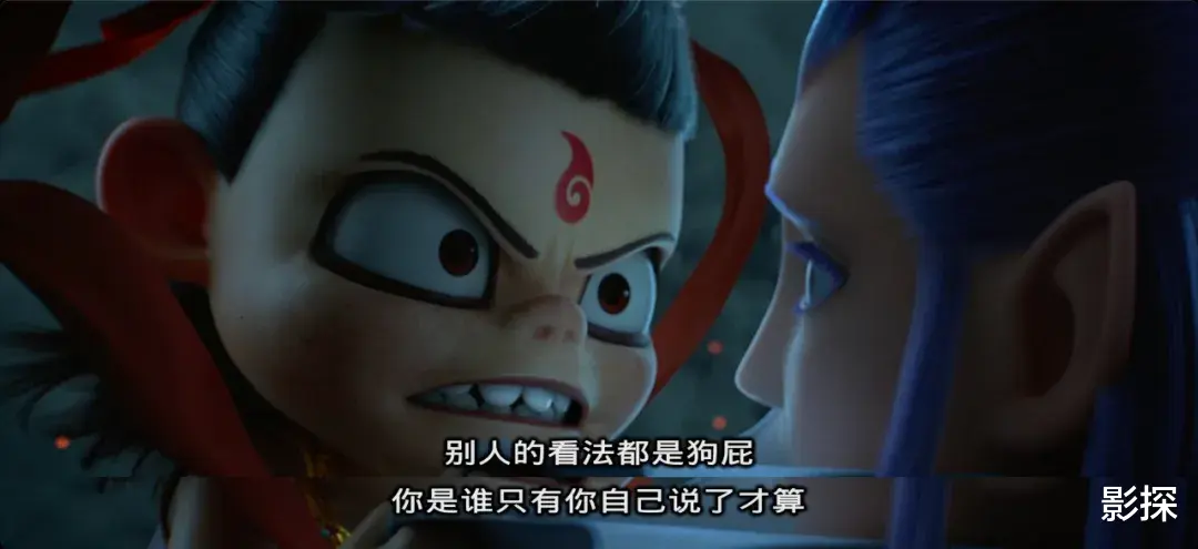 哪吒想起了父亲那句话:“别在意别人的看法,你是谁只有你自己说了才算”。