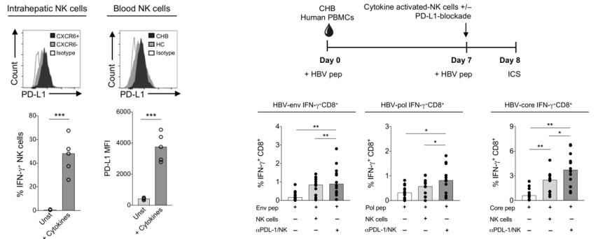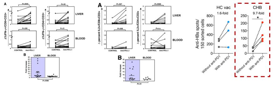 图5. 阻断PD-1/PD-L1后可增强HBV特异性T细胞应答