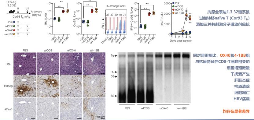 图8. 靶向共刺激分子可以恢复肝内启动CD8+T细胞的功能低下