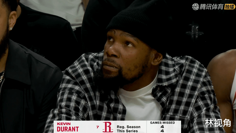 看到球队大比分领先,场边杜兰特脸上也露出笑容,很是开心。