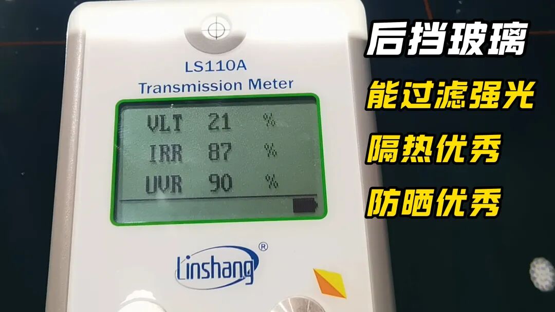小米YU7 2025款后挡玻璃87%的红外阻隔率(IRR)以及90%的紫外阻隔率(UVR),在市面上不算顶尖,大一点也属于10%的那一档。至于24%的透光率(VLT),就意味着这块玻璃在夜间可以很好阻隔后车车灯强光。