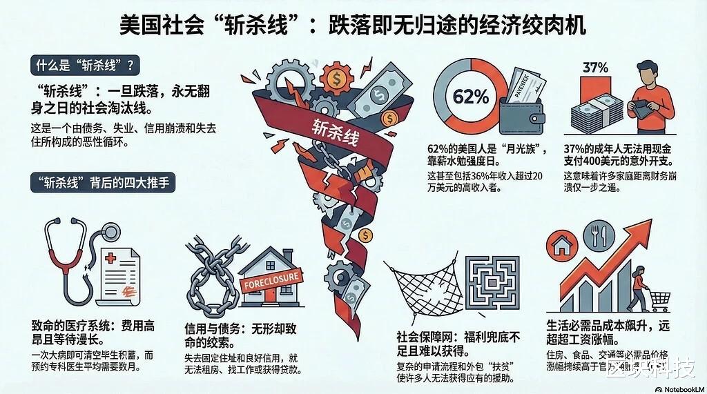 谁也没有想到,“斩杀线”这个原本只存在于游戏里的术语,会在现实世界中迅速走红,并精准地概括了当下美国社会的生存困境。