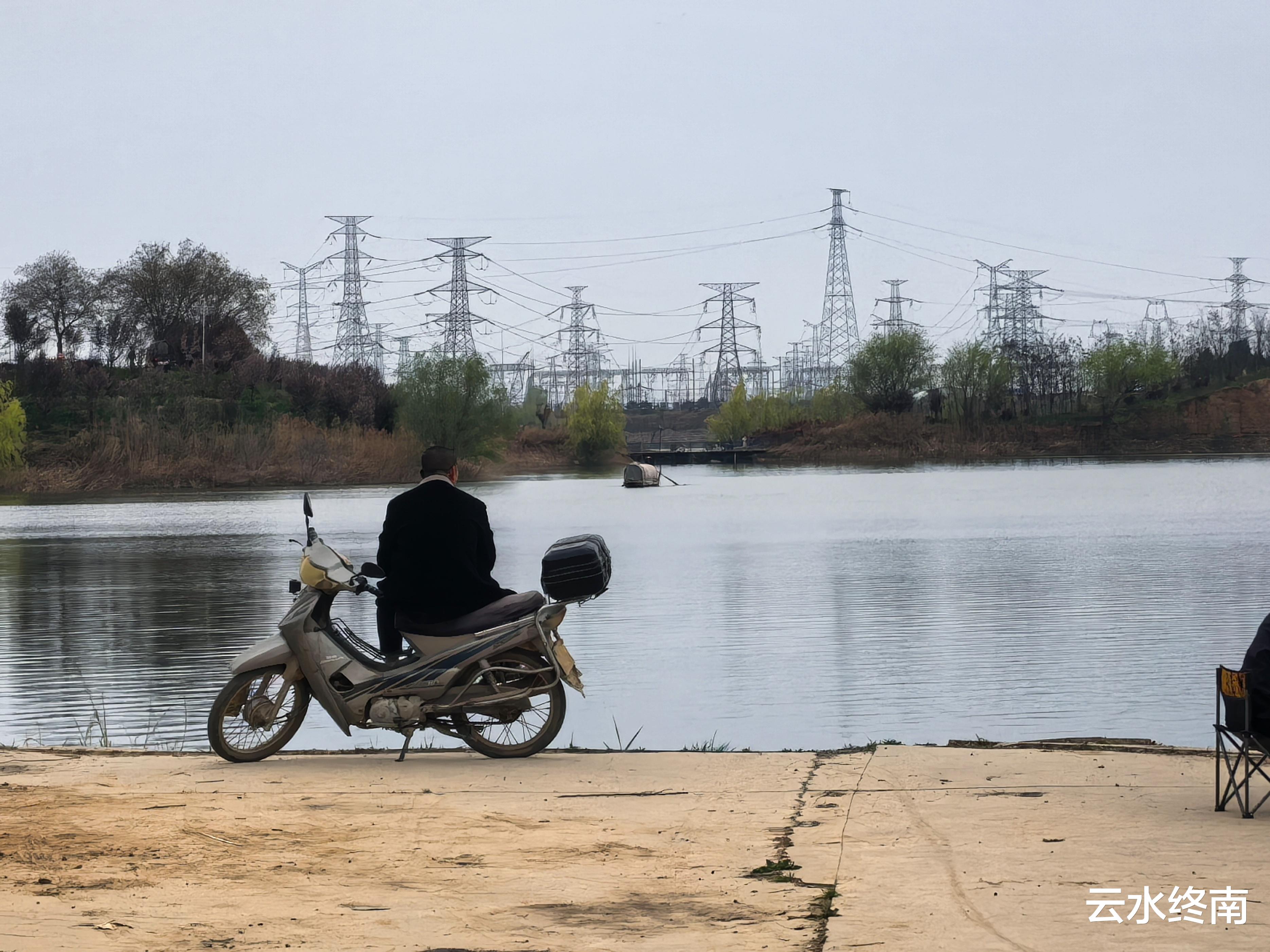 往北面可以走到水面,这是一个码头,一小片水泥地,地上有露营垂钓的人。露营的人谈笑,垂钓的人默然。