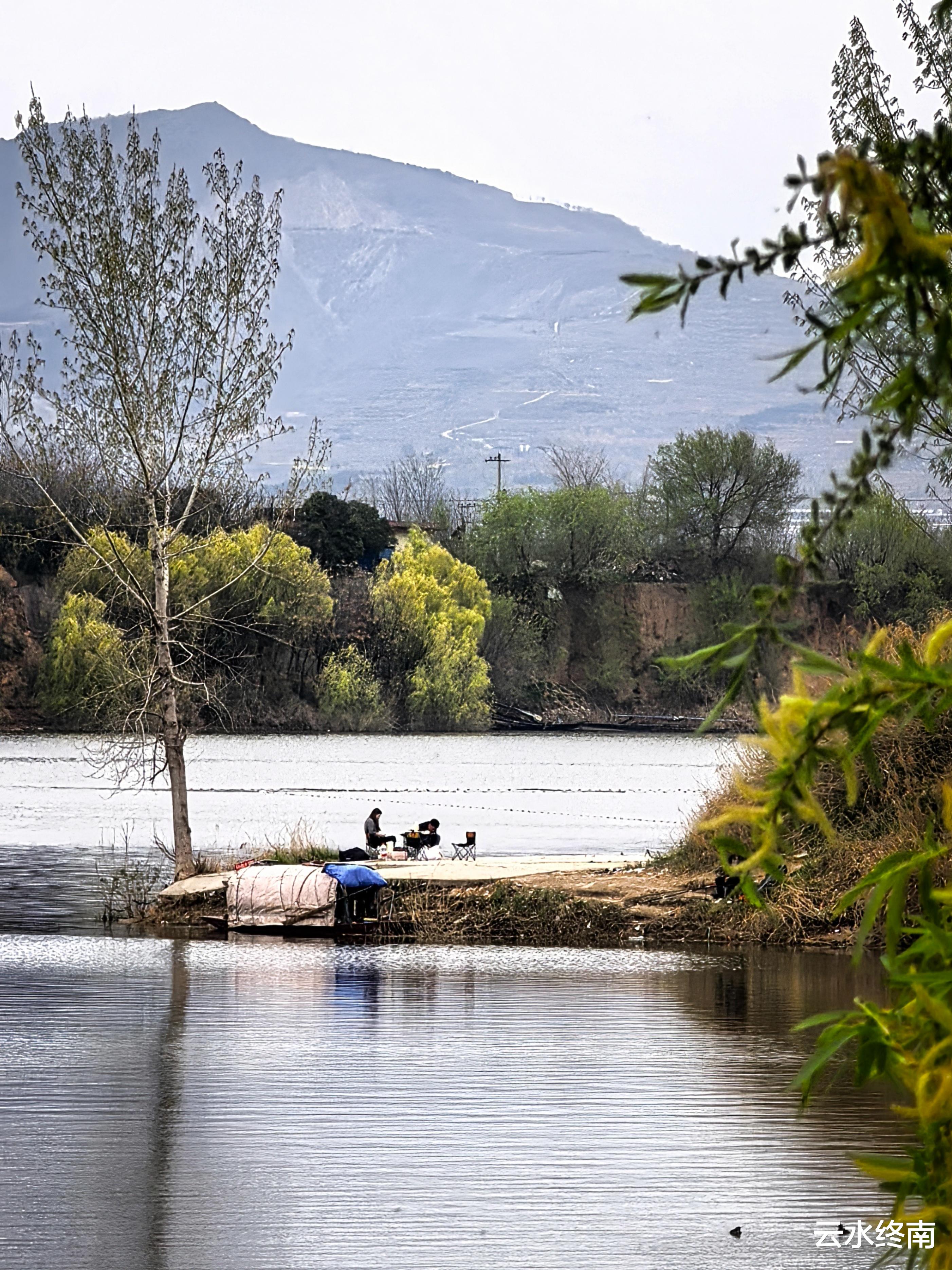 村人没事在水边溜溜腿,看看湖光山色,心情一定不错。