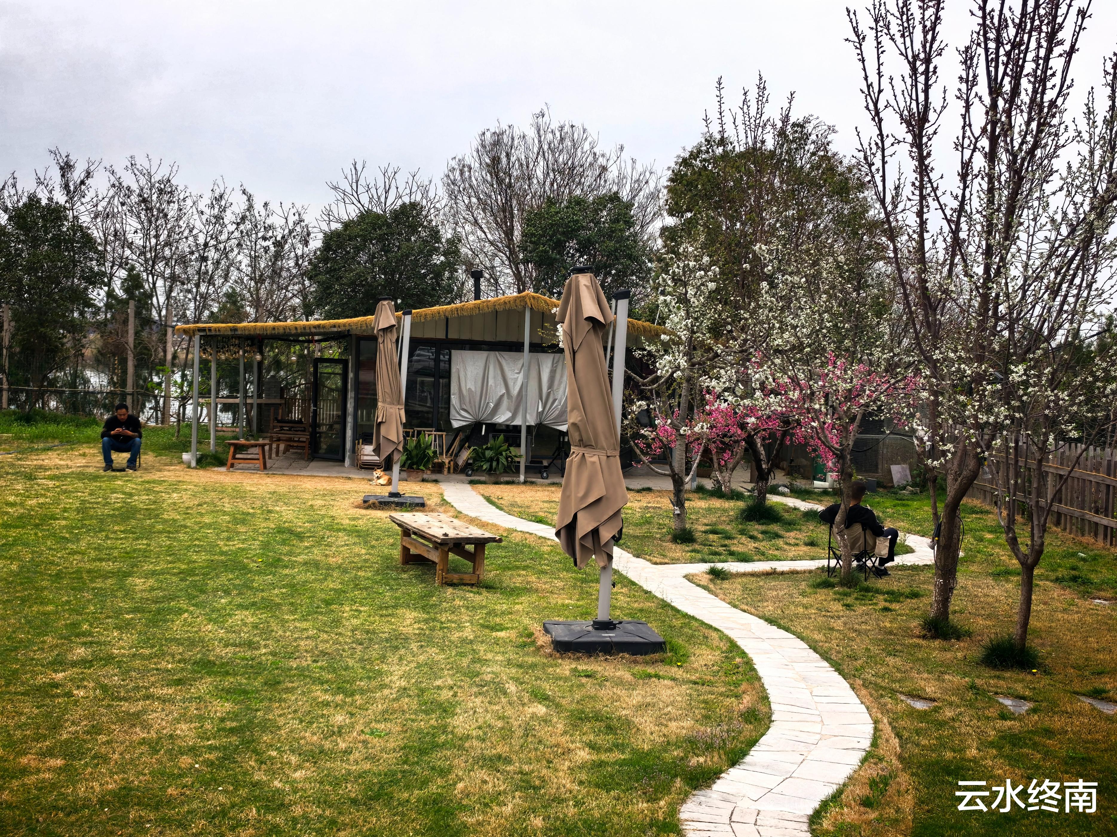 往南边走,这里就热闹了,沿途有挖野菜的,还有一个茶苑,好像还带着露营餐饮,客人不少。