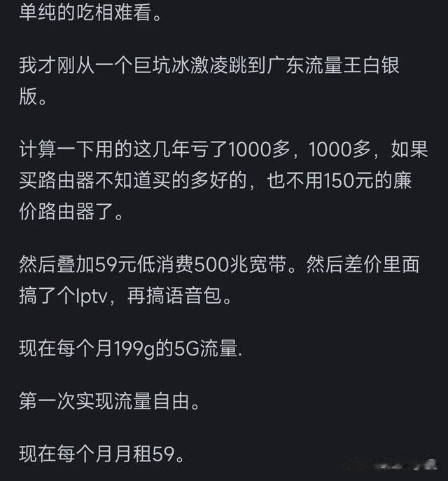 唯一感受是运营商为了利润不择手段了,以前看不上的,现在极限控制,为了让客户少用,不用上传,各种故意劣化宽带,降低宽带质量,一面为了显示在提升自身产品实力,推出了高带宽产品彰显实力。