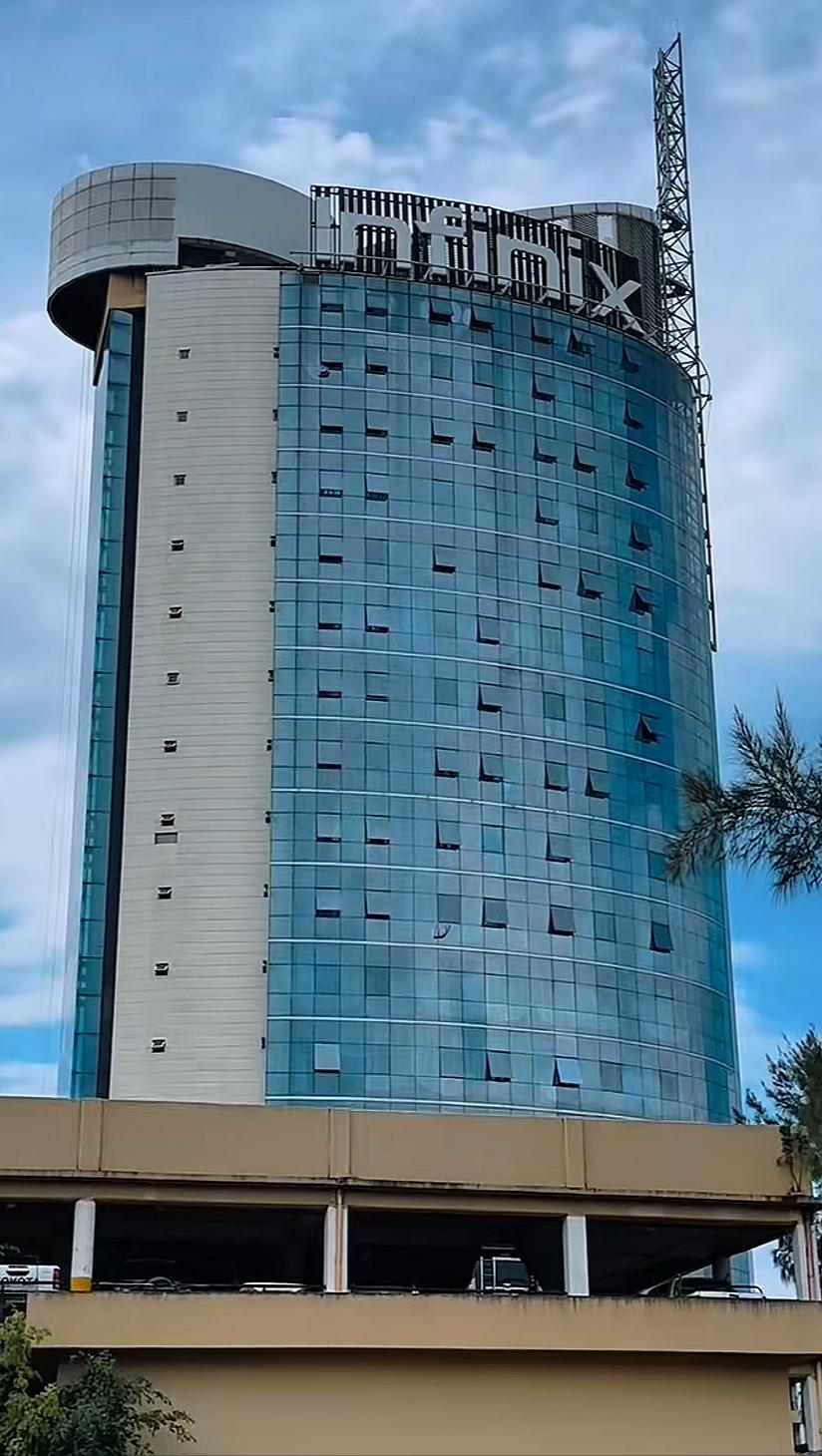 基加利第一高楼因菲尼克斯大厦同样引人注目。蓝色的玻璃幕墙展现出典型的中国风格,一眼就能认出这是中国企业的杰作。这座大厦是深圳传音公司子公司的所在地。