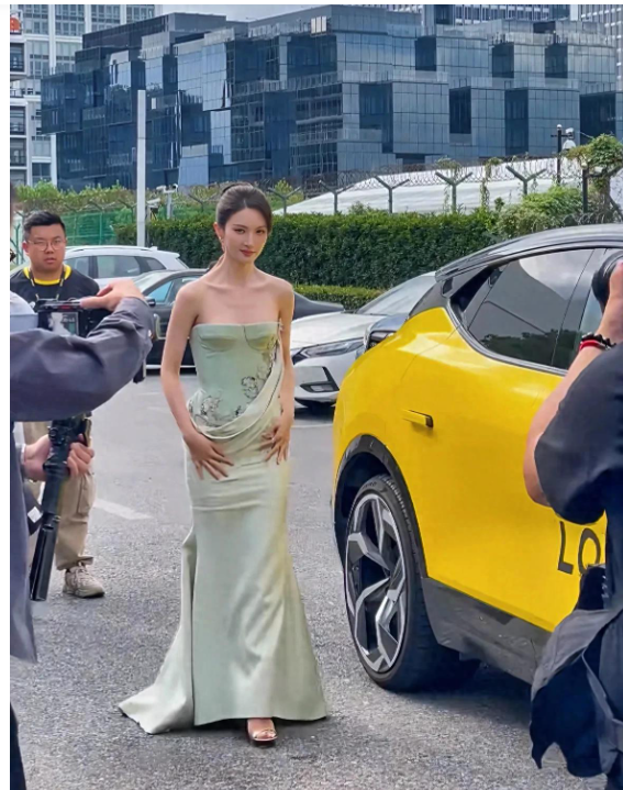 9月21号上海当天莲花跑车新款发布会线下金晨露面,一时间就吸引了很多粉丝和车迷,现场金晨穿着一件牛油果色的无肩抹胸包臀裙,这件衣服还是一位知名设计师品牌的高定礼服,整个裙子整体上绣满了花卉和蝴蝶,特别优雅,很符合当天的出场。