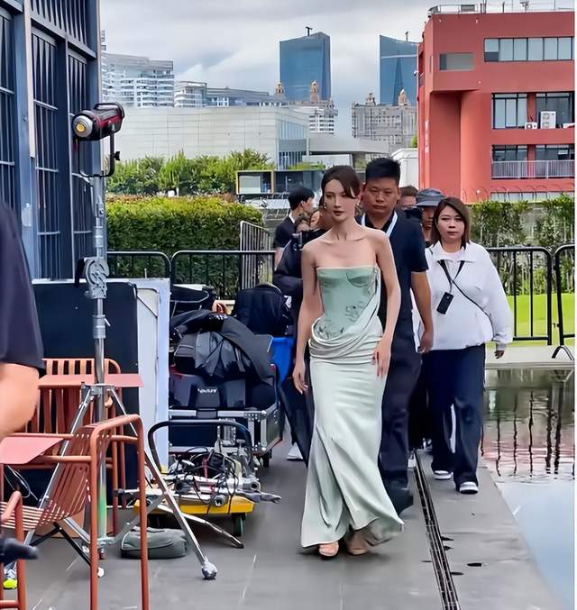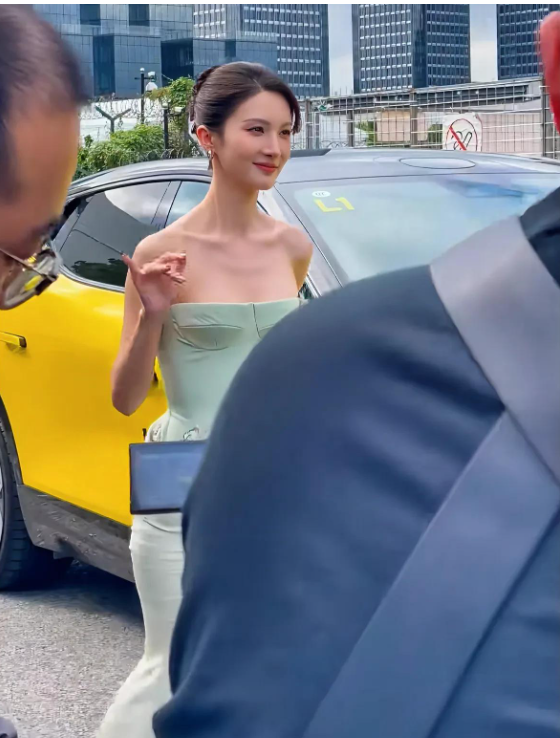 一路上都有随身的工作人员进行跟随,金晨虽然穿着高定礼服,行动上些许不便但是面对车迷粉丝打招呼,还是很礼貌优雅的回应,并没有丝毫的不耐烦。