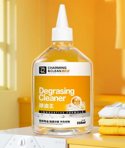 3个选购要点看成分:优先选“表面活性剂+酶制剂”配方:表面活性剂能快速溶解油脂,酶制剂(如脂肪酶)能分解油脂分子,两者结合的产品去油更彻底;避免选含强碱、荧光剂的产品,易导致面料发硬、褪色。