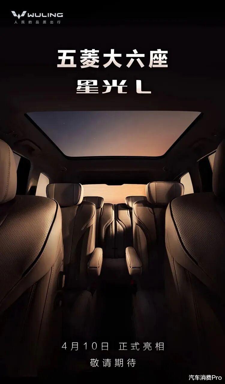 根据官方信息,五菱星光L将于4月10日正式亮相,新车定位中大型SUV,采用1.5L插混系统,并提供5座和6座版本选择。