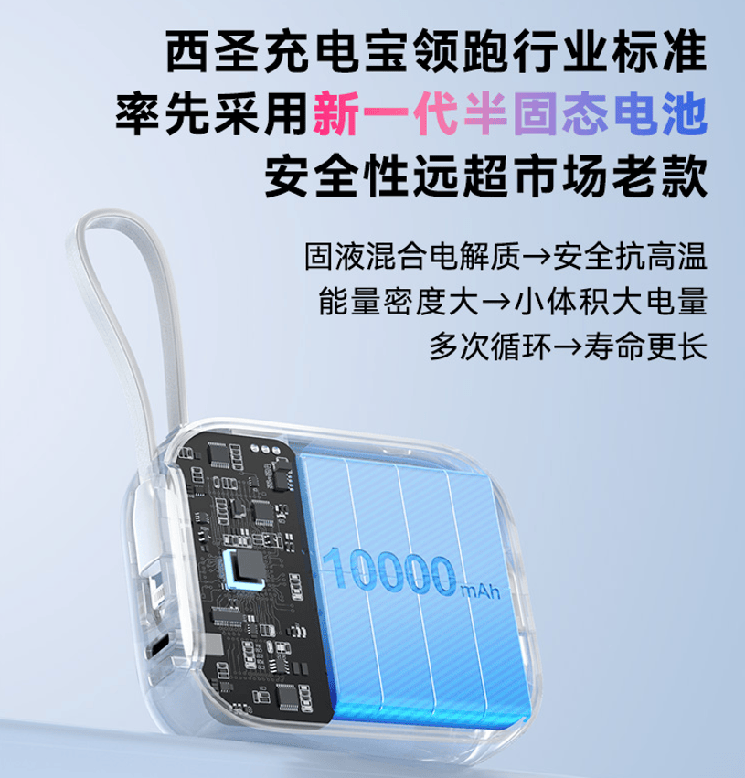 西圣PB-S充电宝无论是充电效率,还是充电不伤机体验等,综合下来它是我最喜欢的无线充电宝。据数据显示,目前充电宝行业只有他们家能做到安全和快充不伤机两手抓!另外,西圣PB-S率先采用了行业领先的半固态电芯,解决了无线充电宝电芯发热量大、充电不安全等的行业问题,期间更是获得了众多户外发烧友和数码达人的认可,目前在充电宝圈内稳居TOP1级别。